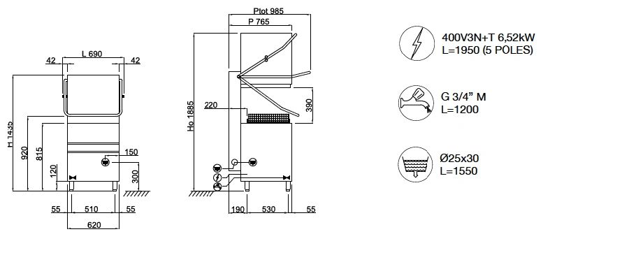 Dimensions - (mm) W - D - H 620x770x1435/1900h