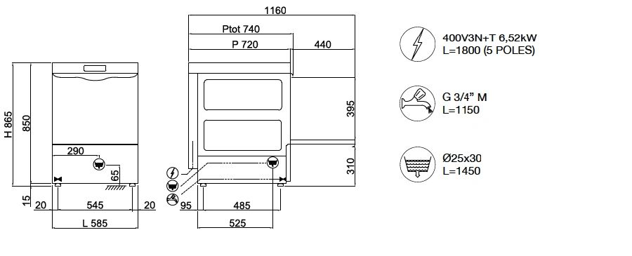 Dimensions - (mm) W - D - H 585 x 715 x 865
